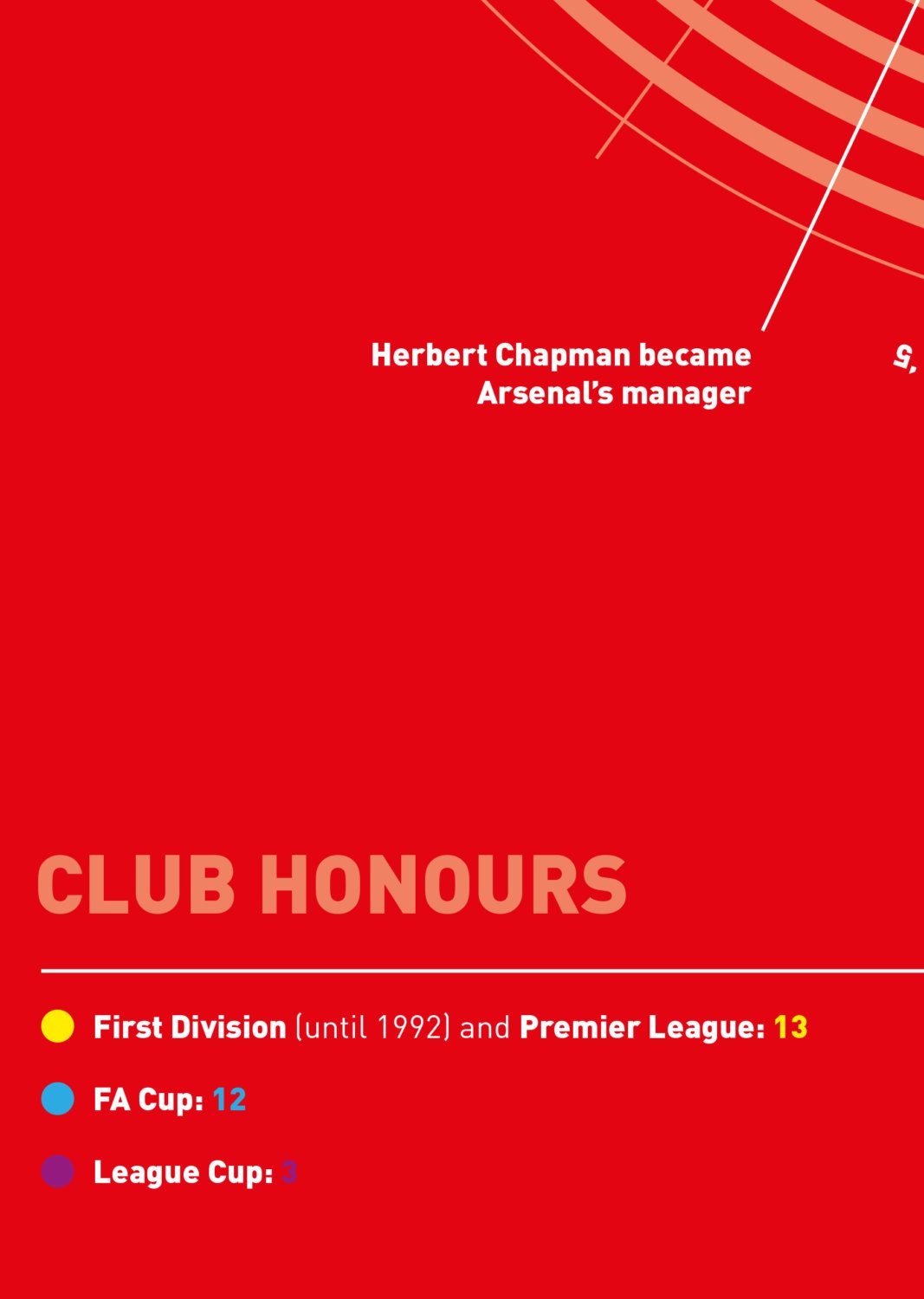 This poster details every club honour Arsenal have ever won in a stunning piece of info-graphical design. Together with snippets of important moments in the club's history it forms a beautiful piece of graphic design that will prove a talking point on any Arsenal fans wall.