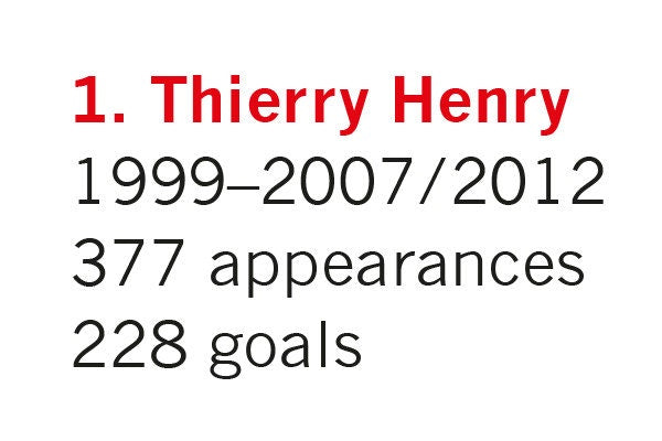The first letter of each surname displays the number of goals scored whilst the bottom of the poster shows more detailed information about their time at the club, including which years they played and total number of appearances.