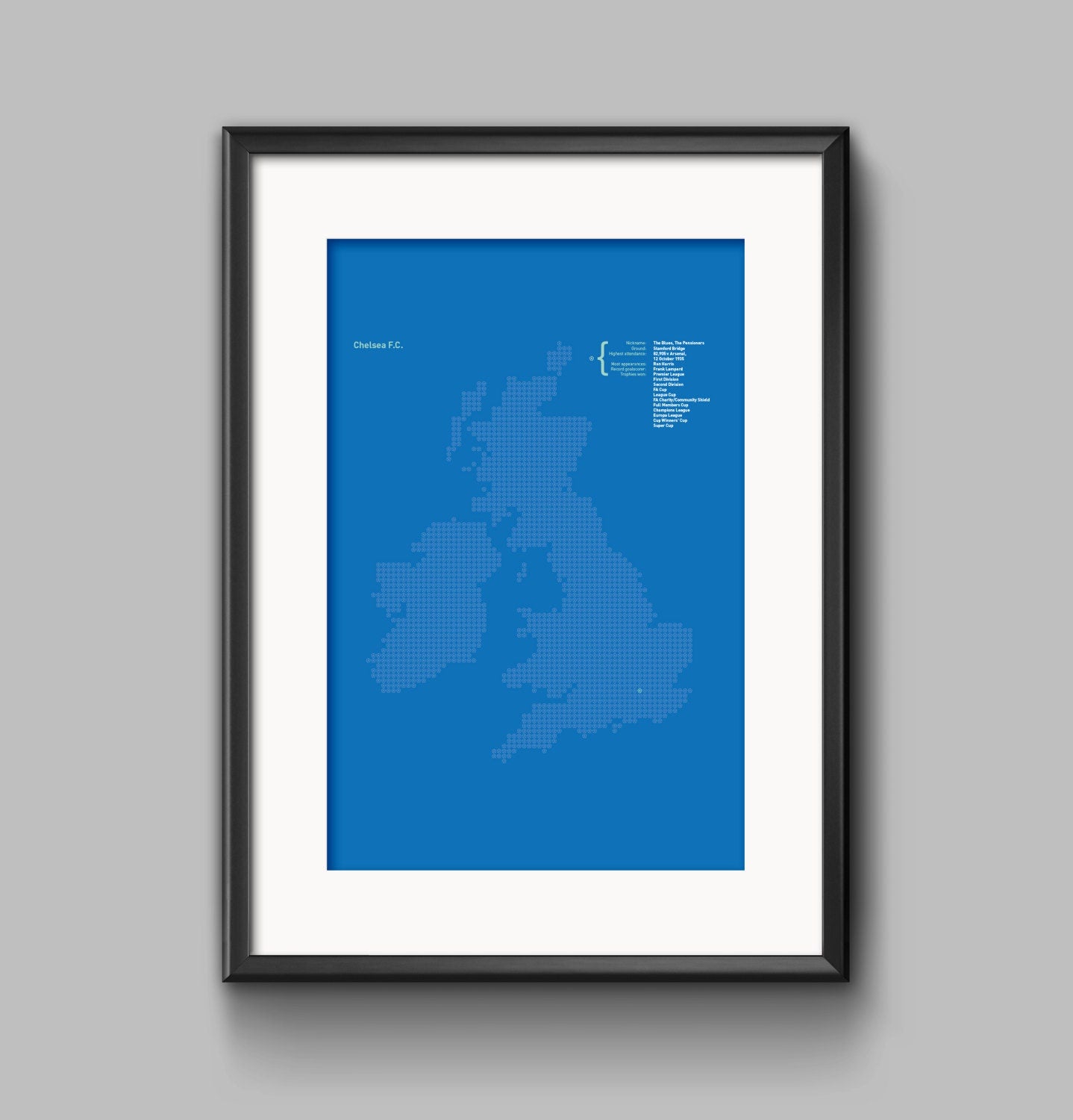 This beautifully detailed illustration of the UK is formed of miniature footballs and together with key stats highlights exactly what puts Chelsea on the map!