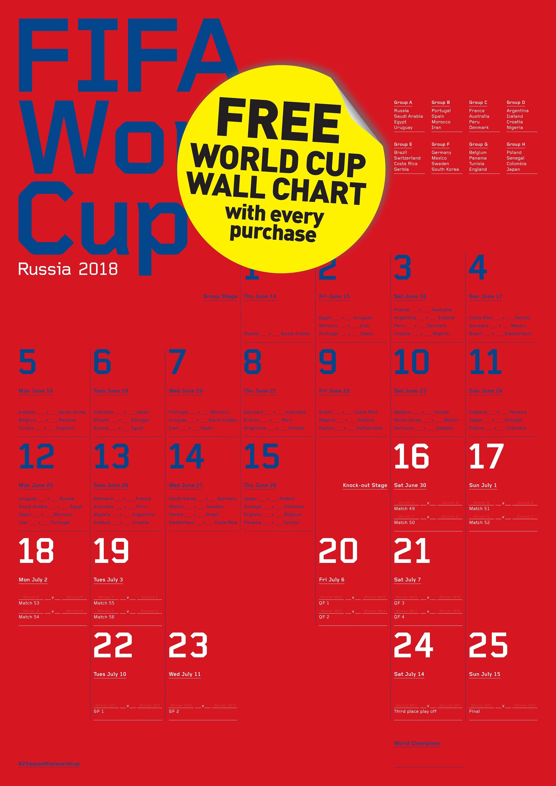 From now until June this poster comes with our own beautifully designed A3 Russia 2018 Wall chart!
