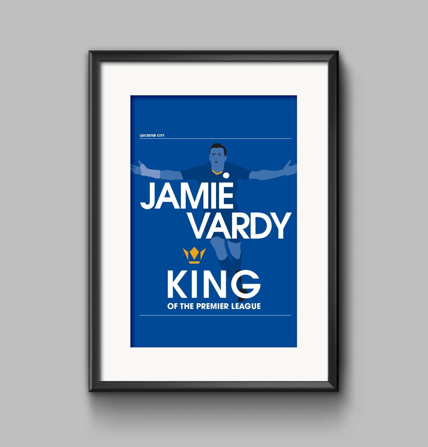 Celebrate the crowning of this year's Premier League champions Leicester City with this unique poster of their top-scorer Jamie Vardy. In this most unlikely of finishes to a season this will make a wonderful souvenir for passionate Leicester fans everywhere.