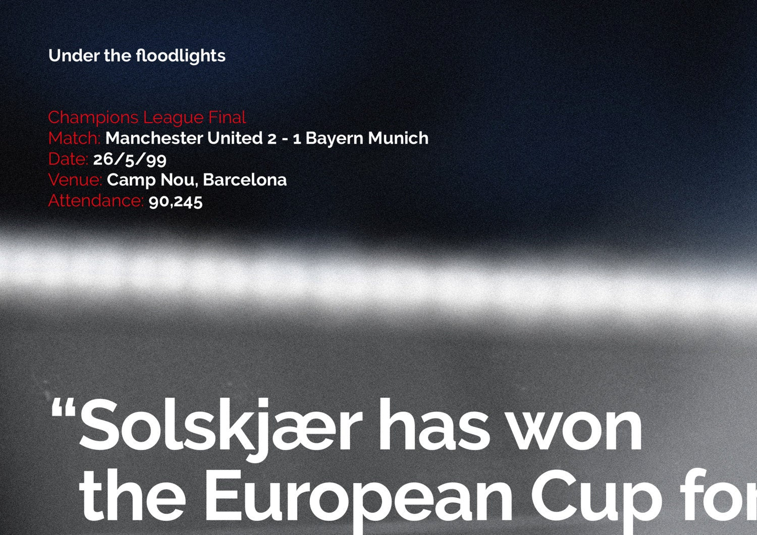 We all know there is something magical about watching football under the lights. This design celebrates surely one of the biggest night’s in United's history. Combining beautiful illustration and typography it makes a wonderful keepsake for any Manchester United fan.